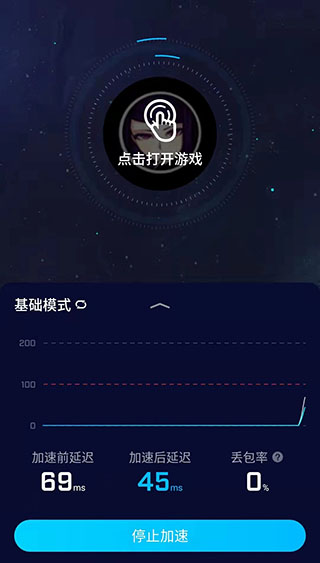 安装完毕后,界面里会自动跳出加速游戏的按钮,点击即可进入加速界面。