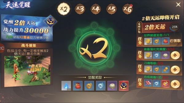 包含天运X3、X4、X5、X6,共计4个类型的天运觉醒。