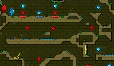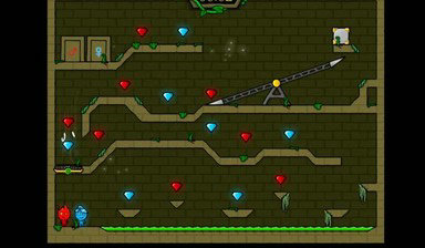 3.当两个冰火人站在一端的吊梯上,控制一端的角色跳跃时,由于惯性,吊梯会慢慢倾向于跳动的一端。