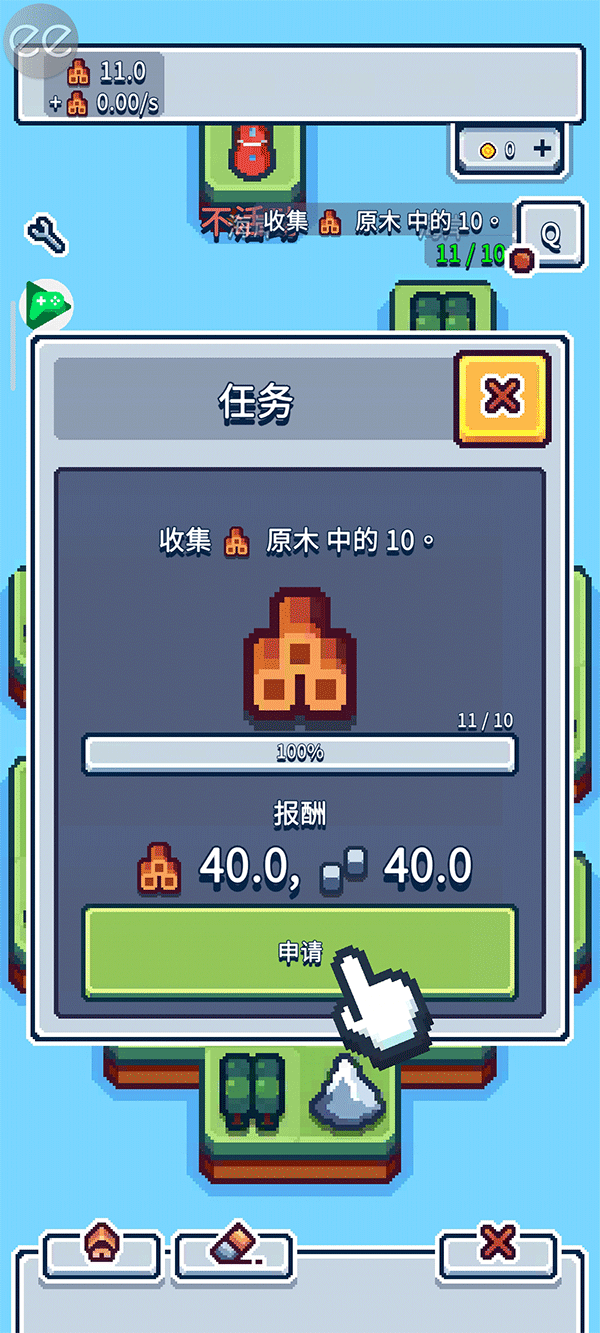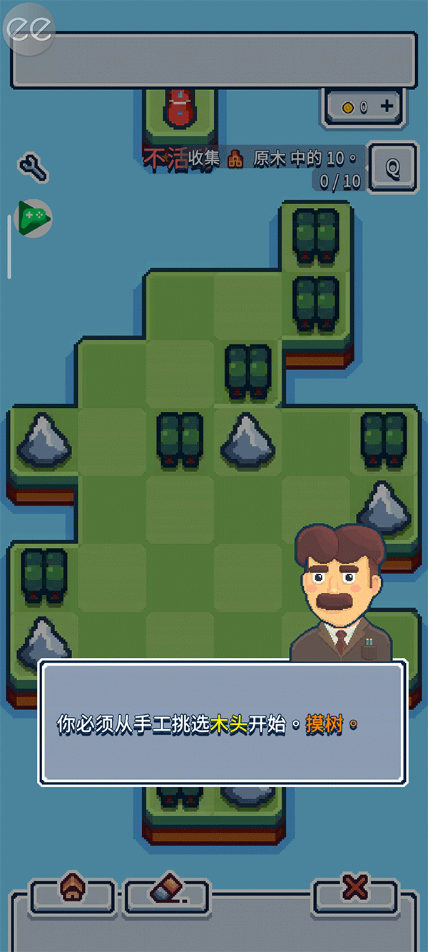 3、从手工挑选木头开始,摸树,找到优质的木材资源。点击屏幕上的树木即可获得木材