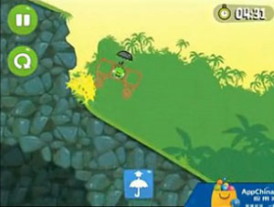 在夜间飞行器第二页和第三页和刺向黎明第一页中的关卡会有小鸟出现,小鸟在刚开始的时候是熟睡状态,如果你发出了过大的声音就会吵醒小鸟,小鸟就会来攻击你的载具,一般可以使木制载具散架。小鸟会瞄准雀斑猪所在的位置发射,如果雀斑猪的位置小鸟射不到,小鸟不会发射。不过小鸟射得一般不准,因为你的载具也是在移动的。
