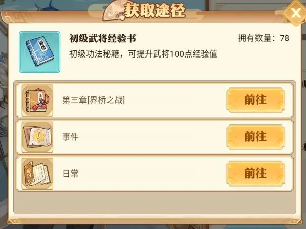 从面板上能看出,武将战力的提高主要是为他升级、升星、训练职业天赋和打造装备。我大概整理了一下各种提升所需要的材料,如下: