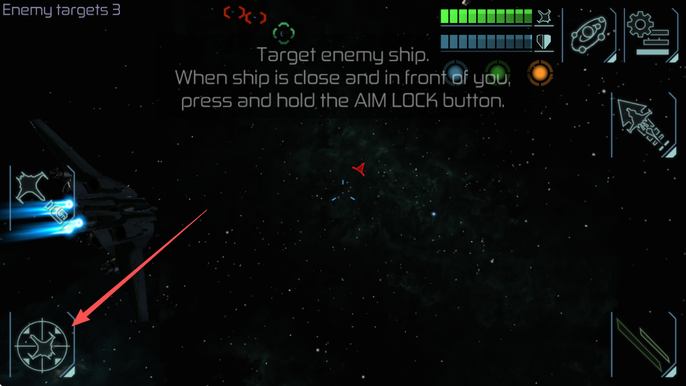 当敌舰靠近且位于前方时,按住下方按钮锁定敌舰
