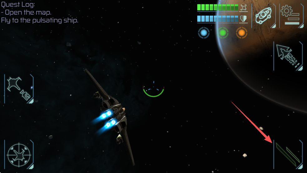 打开游戏,选择适合你的操作方式,第一种是重力感应来操控飞船方向,第二种是通过滑动屏幕来操控飞船方向