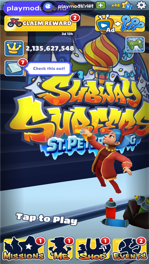 分数争霸赛再度回归,跑酷者们可以在无尽赛道中冲刺高分挑战,和自己的极限记录进行比拼。排行榜将会根据跑酷者们的最高分数进行排名,排名前列可抱走地铁跑酷实体周边。