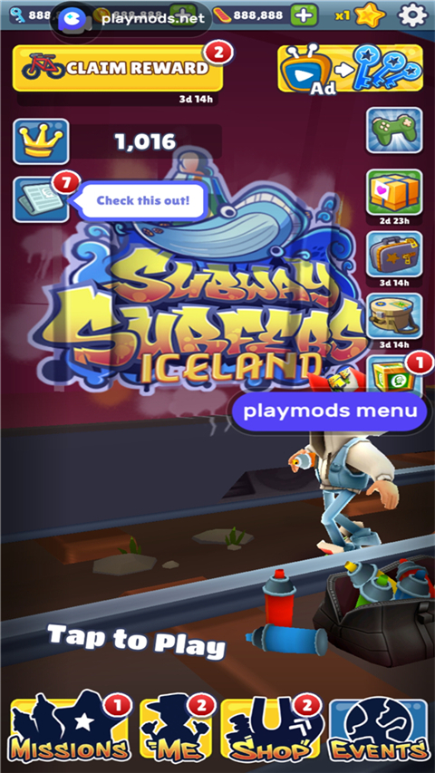 3、点击下载模组,需要你先下载playmods一起搭配使用,playmods这个软件下载完可以不用打开,直接进入在地铁跑酷中选择想玩的地图。