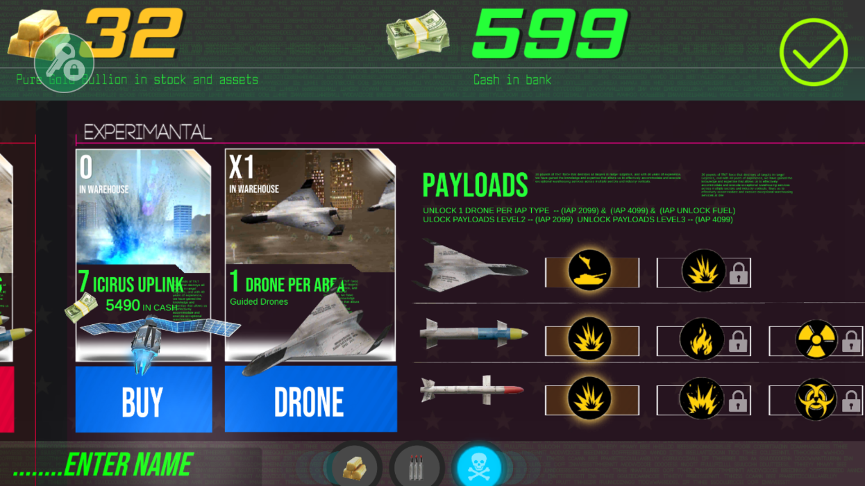 核弹2无限核弹中文版是一个非常有趣的军事题材战斗游戏,在这款游戏中,你的身份是一名轰炸手,学会利用在空中的视野和优势击杀景观中的一切,消灭名单上的一切人选,这是份绝密任务,你可以使用手中的核武器消灭更多的区域,秘密又准确的执行名单上的任务目标。除了投放炸弹,你还可以营救在沙漠中的突击队,营救自己的队友,核弹2无限核弹中文版是一款可以让玩家使用各种核武器的刺激游戏,快来尝试吧。