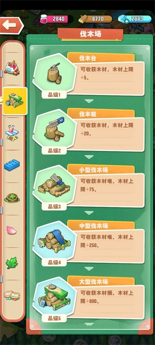 木头能买建筑,升级仓库,提高木材和果酱的上限,神秘商店也能买东西,果酱能买动物抱枕,去旅游。前期建议肝木头和果酱。