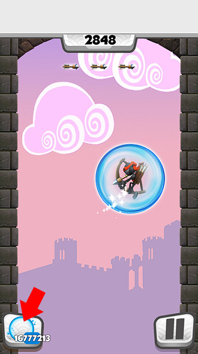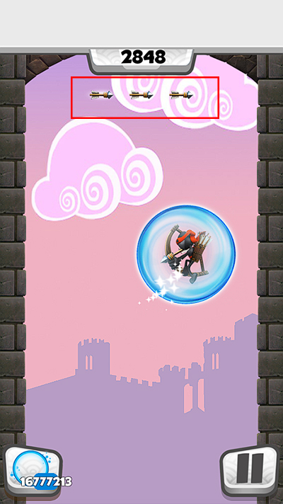 2、进入游戏后,我们需要一遍留意地形方面的阻碍,同时还需击落空中的飞行物来为自己提供飞行加速效果,飞行道具积攒可通过下图圈出的位置来确认