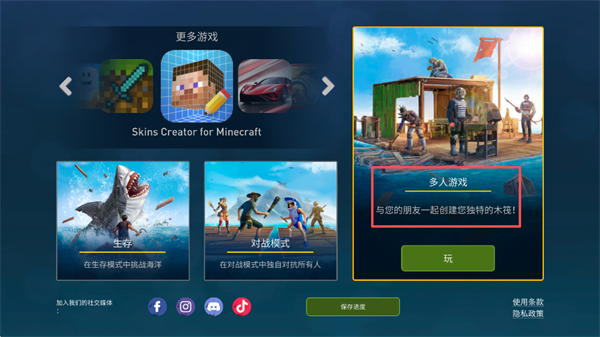 1、打开木筏生存 多人联机 版,在多人在线游戏下方点击玩