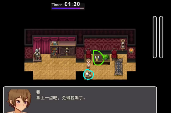 首先要拿茶水,我们的首要目标是,拿两杯茶水,把主房间壁炉的火熄灭。