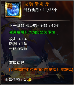 (3)坐骑资质丹可以通过充值活动或者勋章商店兑换获得;