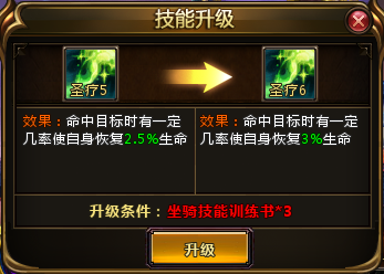 升级坐骑技能需要使用坐骑技能训练书道具。