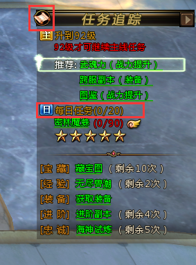 1、 玩家完成47级主线任务后将开启每日任务,可通过游戏主界面右侧任务追踪栏上的入口进入: