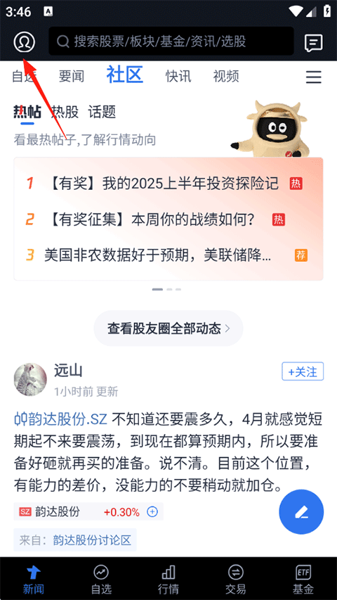 用户可参与股市热点交流,分享自选见解,关注高质量内容创作者,在互动中获取有价值的投资线索,与社区共同成长。