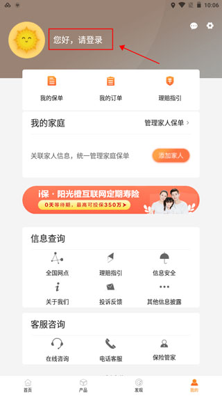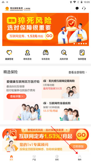 2、打开阳光保险APP后,点击“我的”登录