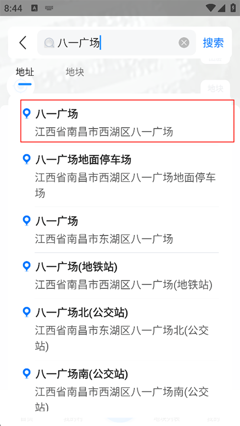 2、在搜索栏中搜索起点,以八一广场为例,点击进入。