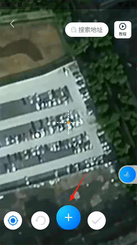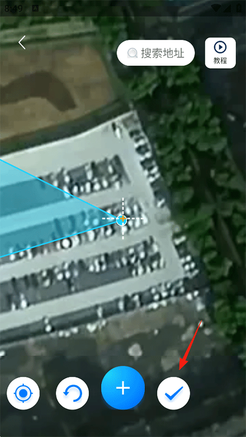 7、测量面积需要最少连接三个点,本次也以三点为例,把最后一个锚点返回到八一广场,点击下方✓。