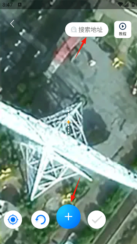 6、确认第一个锚点后你可以手动拖动地图到任意位置,也可以在搜索栏搜索下一个锚点,然后点击添加锚点(注意:单次测量面积不能超过5000亩,所以锚点之间不要距离太远哦)。
