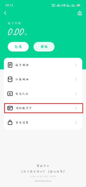2、在零钱中,找到【我的银行卡】,点击进入查看、添加、解绑银行卡;