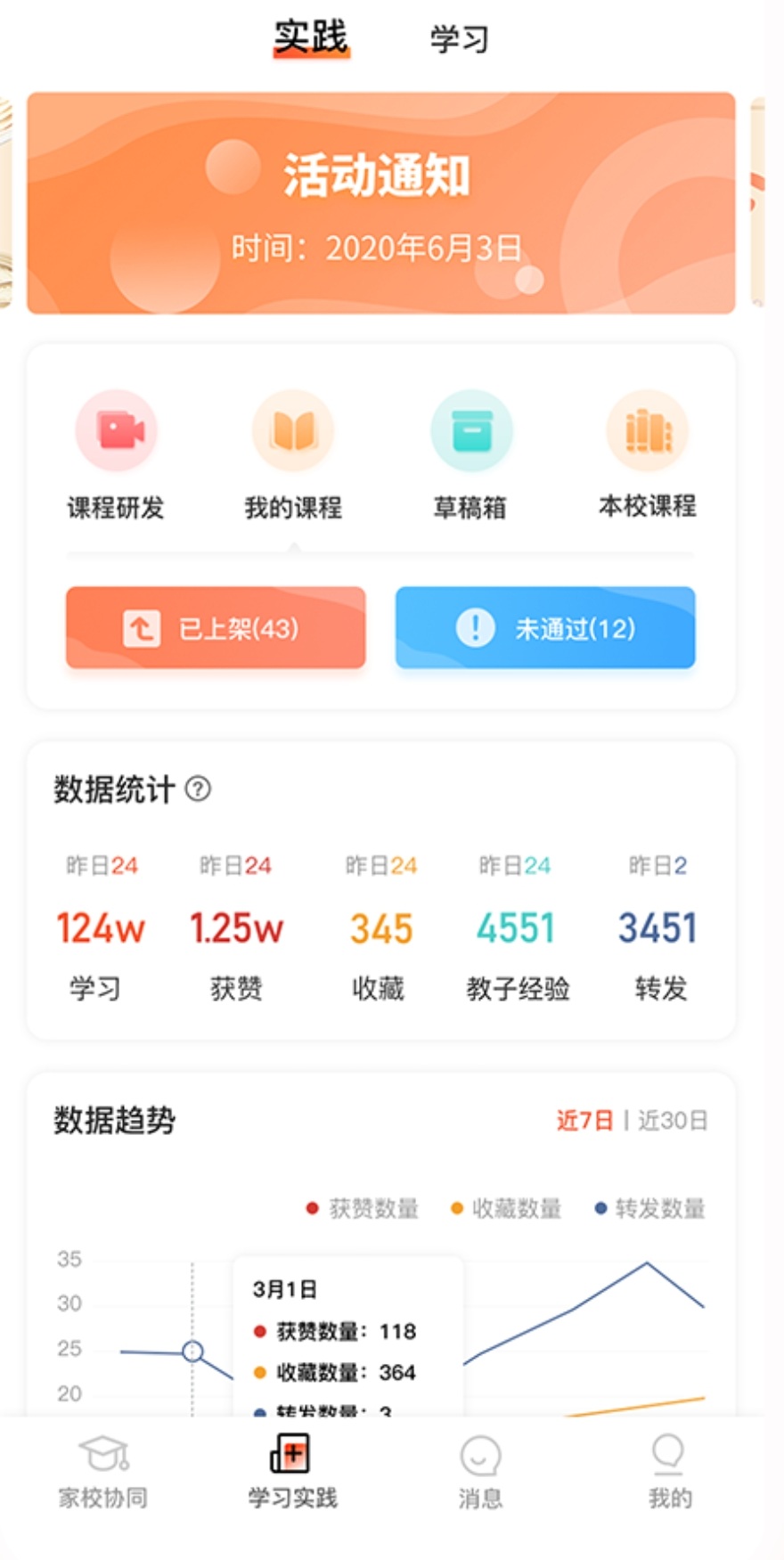 家校互通:学校通知、教师建议等消息,家长都能实时接收,并交流反馈