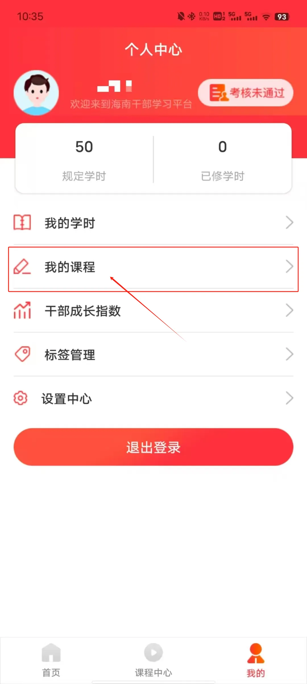 2、点击我的课程。