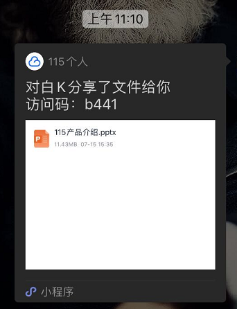 ①「大众分享」:所有115注册用户均支持文件分享,用户可以将文件分享给不同平台的好友(微信/QQ好友)。