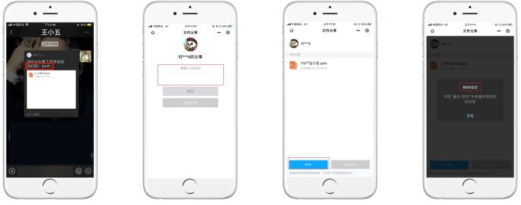 ①点击好友微信分享对话框,输入访问码,即可查看好友分享的文件。
