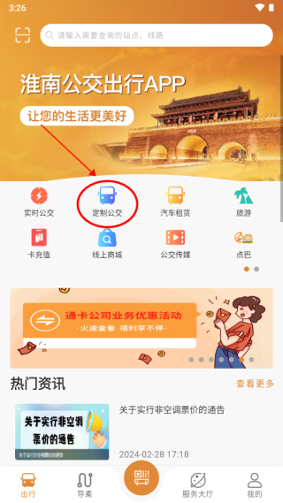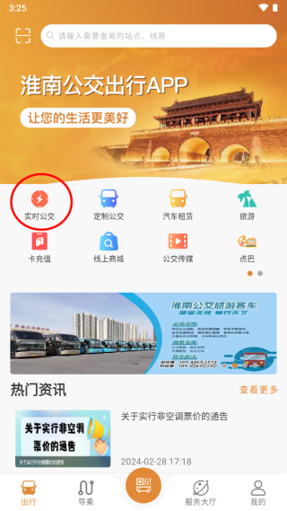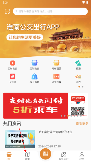 1、进入淮南行app,点击导乘