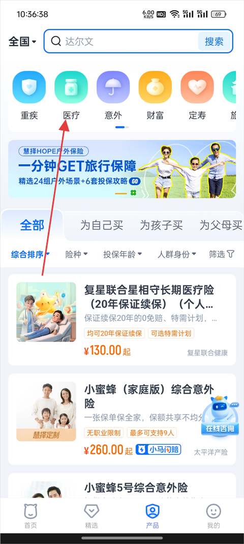 2、在产品分类中找到并进入【医疗】专区;
